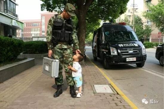 两岁儿子路遇武警执勤父亲"求抱抱" 紧抱裤腿不放